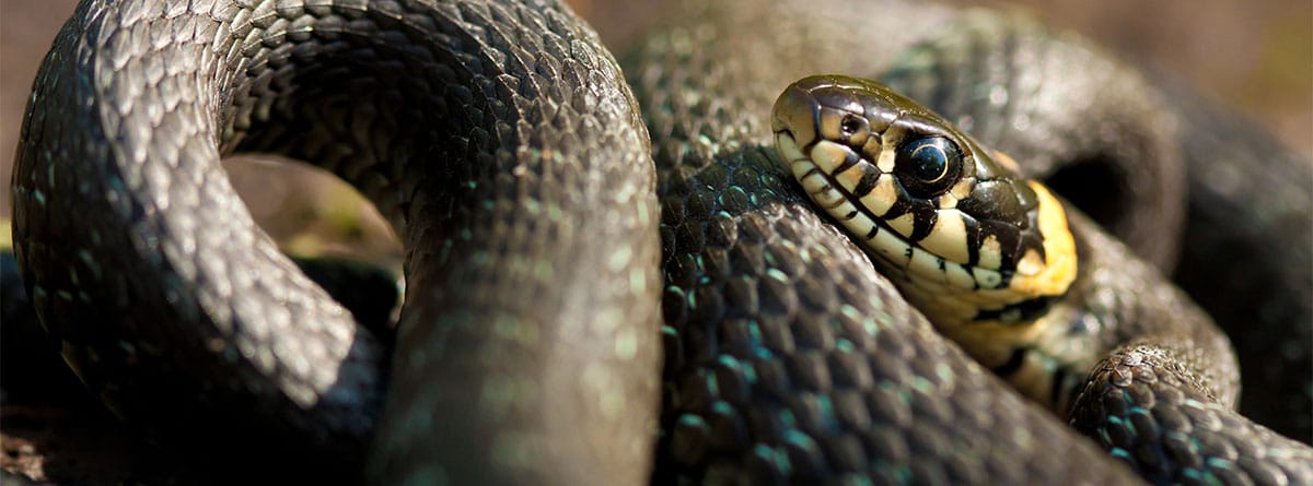 - No venenosas: cabeza más redondeada y pupilas circulares. No suelen tener colmillos visibles.