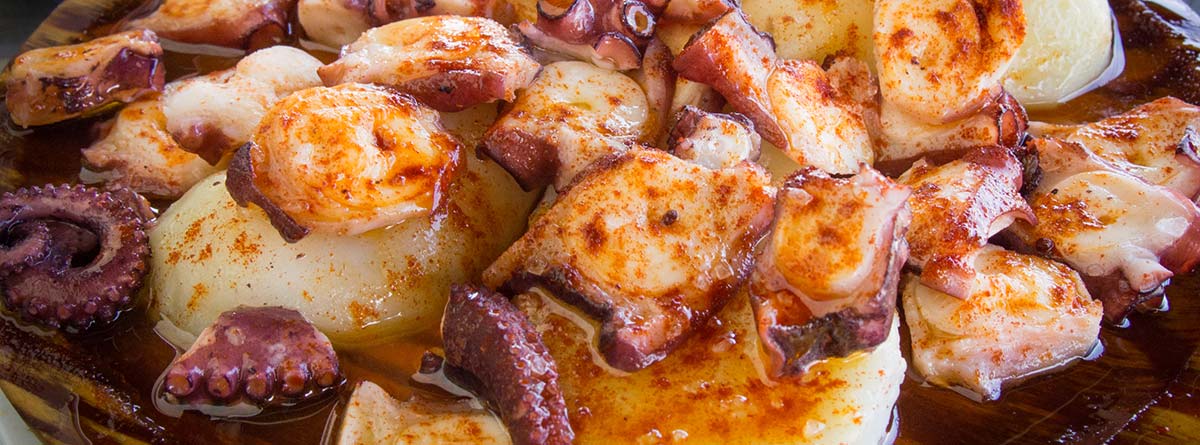 Para cocinarlo, debe ponerse agua sin sal a hervir y, cuando llegue a ebullición, cogiéndolo por la cabeza, meter y sacar el pulpo tres veces consecutivas, de ese modo se consigue que no se le desprenda la piel. A esta técnica se la conoce popularmente como “asustar el pulpo”. Cocemos el pulpo durante 25-30 minutos (el tiempo dependerá del tamaño de la pieza), pinchando de vez en cuando para ver cómo está de duro. Una vez ha acabado de cocer debe dejarse reposar unos minutos en el agua caliente, y posteriormente se pasa a una fuente, se corta con tijeras, se pasa a un plato y se sala con sal gorda, pimentón y aceite de oliva virgen extra. Puede servirse con una cama de patata hervida.