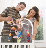- Juguetes adecuados a la edad del bebé: móviles con música, muñecos blanditos que se puedan morder…